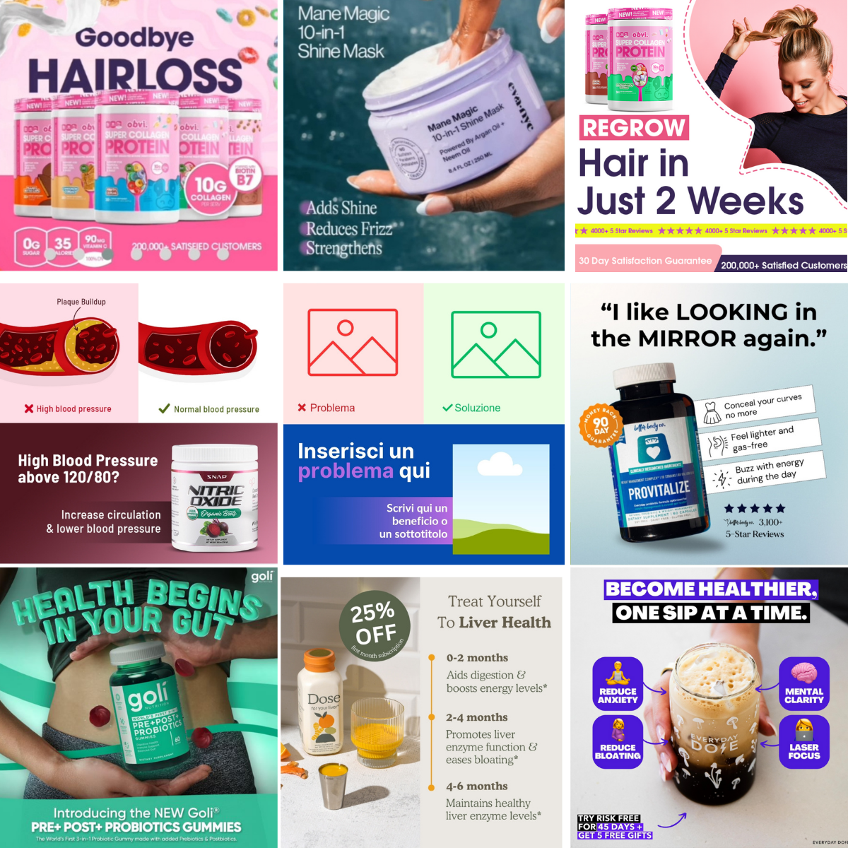 +150 creatives già impaginate, già testate, già efficaci. Tu devi solo aprirle e adattarle al tuo brand.