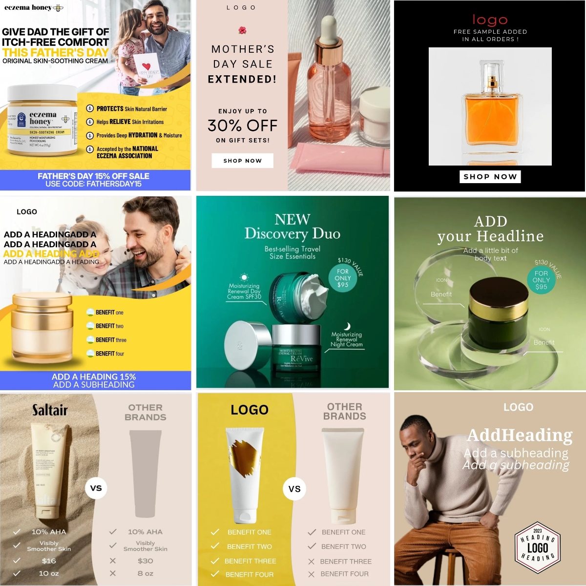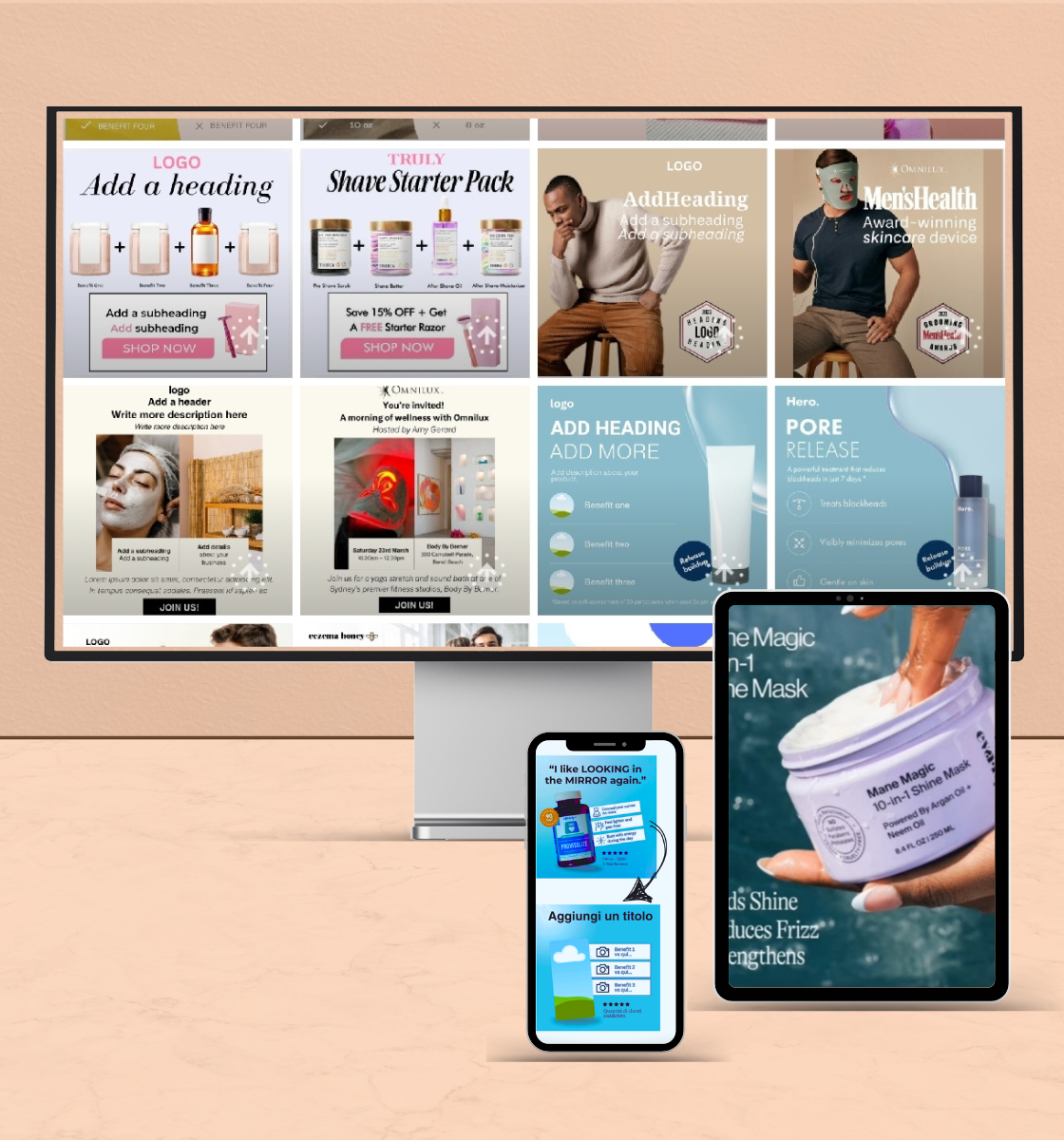 Che tu venda beauty, wellness, fitness o cosmetici, questi templates parlano al tuo pubblico.